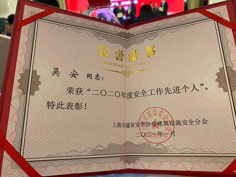 法適達(dá)公司榮獲上海市建設(shè)安全協(xié)會(huì)建筑設(shè)施安全分會(huì)頒發(fā)的安全工作先進(jìn)企業(yè)以及個(gè)人先進(jìn)。